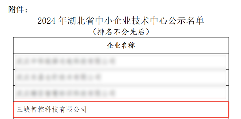 近日,湖北省經濟和信息化廳公布了《2024年湖北省中小企業技術中心公示名單》,三峽智控科技有限公司憑借在清潔能源工業控制系統領域的突出技術創新能力和研發實力,成功入選“湖北省中小企業技術中心”。